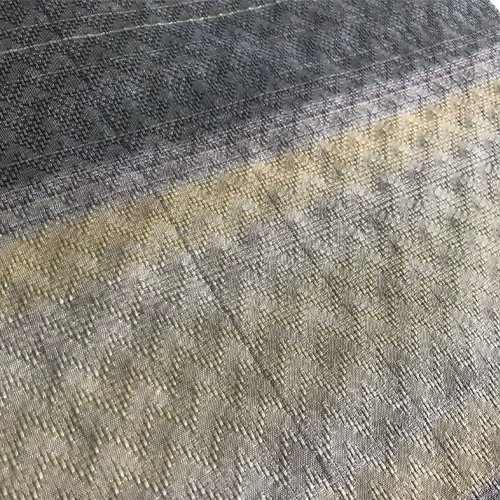 福岡県糸島市にて博多織デベロップメントカレッジ同期の大内田明子氏が養蚕・製糸した座繰り糸をヨコ糸に使用して制作した作品です。 川沿いに佇む柳の枝が風でかすかに揺れる様子をイメージしています。 2018年 制作 染料:エンジュ、桑、クチナシブルー