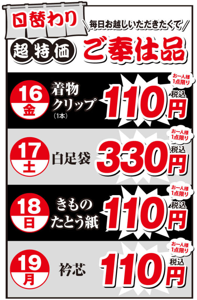16日(金)・・・着物クリップ 110円(税込)