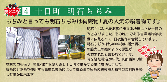 明石ちぢみは約400年前に播州明石の船大工の娘によって原型が考案されたと言われています。