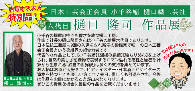 作家で社長の樋口隆司さんは小千谷の縮屋六代目であります。