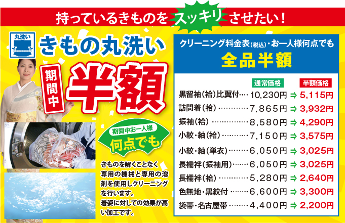 着物を解くことなく専用の機械と専用の溶剤を使用しクリーニングを行います。