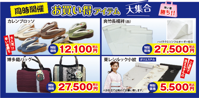 カレンブロッソや博多織バッグなど、大人気アイテムがお買い得価格に!