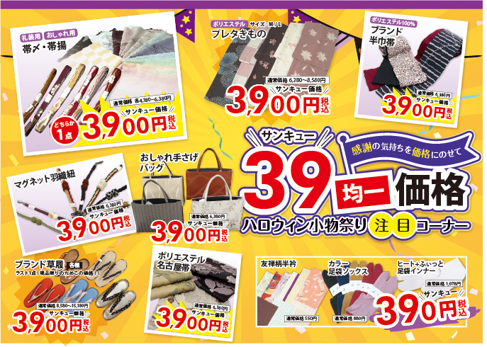 感謝の気持ちを価格にのせて、39(サンキュー)均一価格の小物セール!