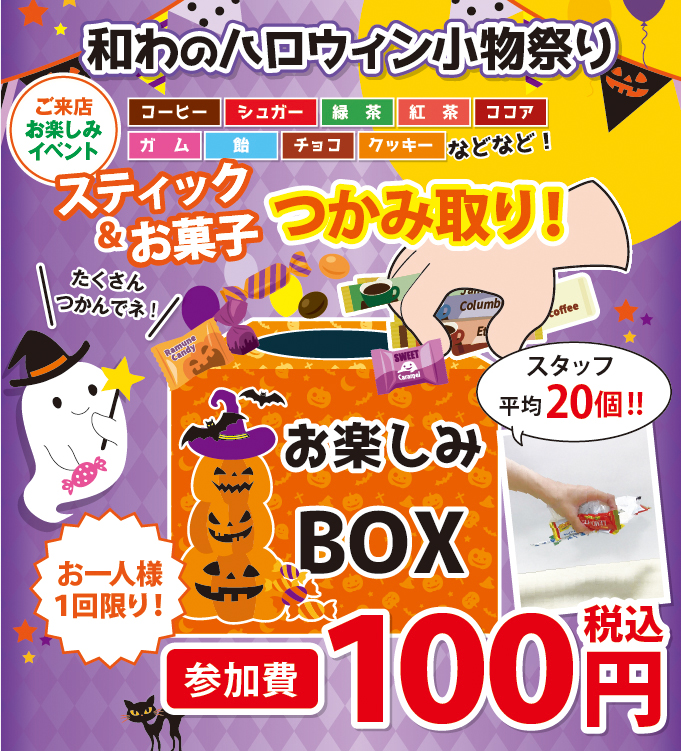 和わでは「ハロウィン小物祭り」と称して、とってもオトクなイベントを開催いたします!