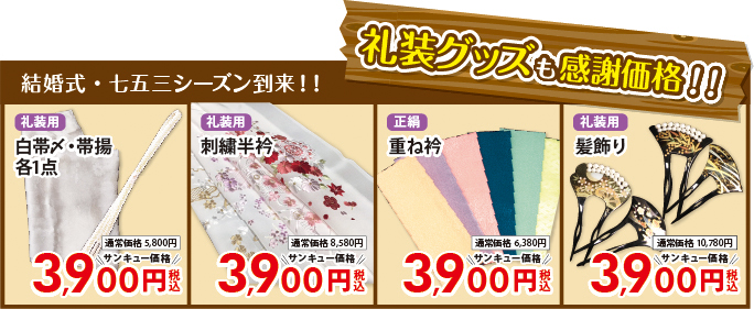 帯締め・帯揚・ブランド草履・半巾帯などなど、感謝価格でご提供いたします♪