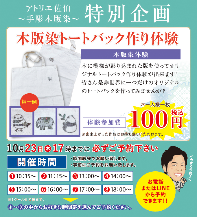 和わ×アトリエ佐伯 産地応援プロジェクトといたしまして、手彫木版染展を開催いたします。