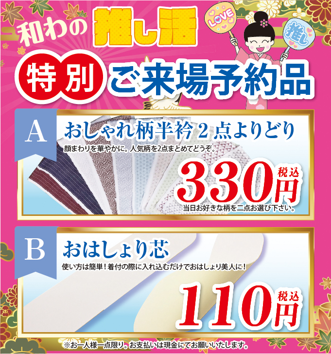 「和わの推し活」イベントの来場予約をしてくださった方に、下記商品を特別価格にてご提供いたします!