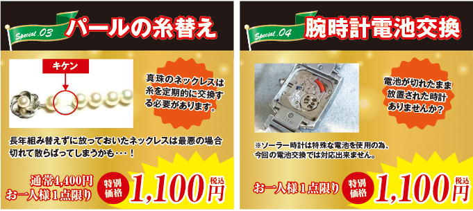 この機会にパールのネックレスや電池が切れたままの腕時計のメンテナンスはいかがですか?