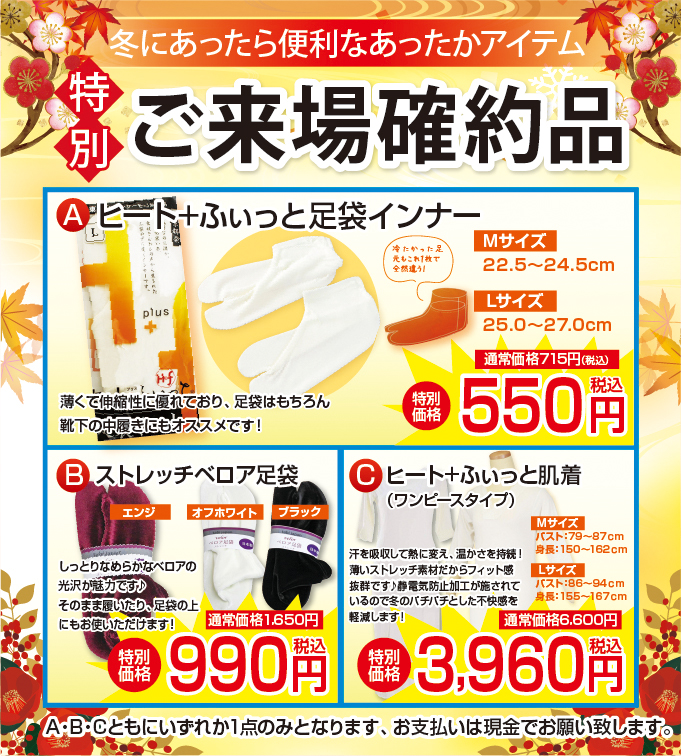 【A】ヒート+ふぃっと足袋インナー 550円(税込)