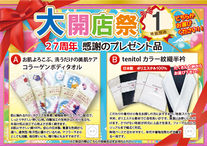 そこで、この感謝の気持ちを込めて開店27周年記念『大開店祭』を開催致します。