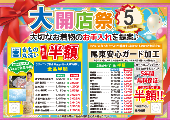 ●きもの丸洗い お一人様3点まで全品半額