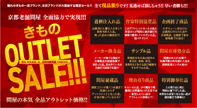 憧れのきもの一流ブランド、注目ブランドが大集結する限定セール!!全て現品限りです! 見逃せば損しちゃう!! 早い者勝ち!!!