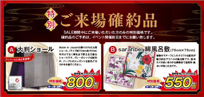 イベント期間中、ご来場のご予約をいただいた方にはA・Bどちらかの商品を特別価格にてご提供!