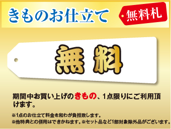 着物や帯お仕立て代や帯〆、帯芯、帯揚などの和装小物が半額に☆
