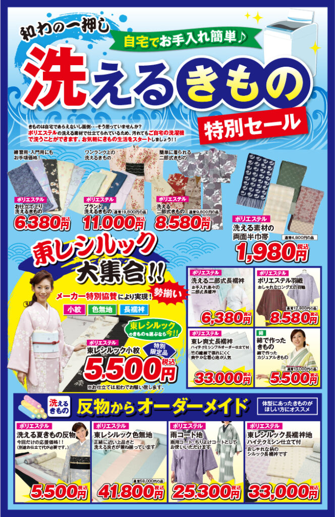 ご自宅でお手入れが簡単!これからきもの生活を始めようとしている方にもオススメな洗えるきもの。