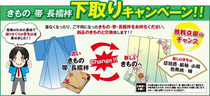 期間中、無料で新しいきものと交換いたします!