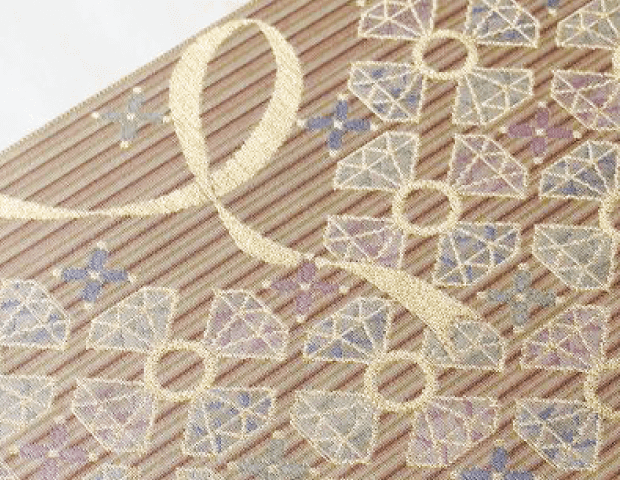 女性らしい感性を軸に織り上げられた作品は、その一本一本にテーマが込められており、従来の博多織と一線を画す繊細かつ大胆なデザインが魅力のひとつです。